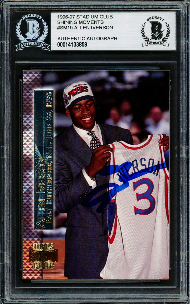Allen Iverson Autographed 1996-97 Stadium Club Shining Moments Rookie Card #SM15 Philadelphia 76ers Beckett BAS #14133859