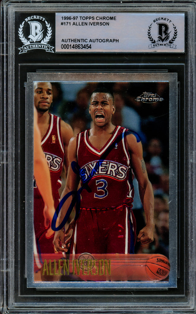 Allen Iverson Autographed 1996-97 Topps Chrome Rookie Card #171 Philadelphia 76ers Beckett BAS #14863454
