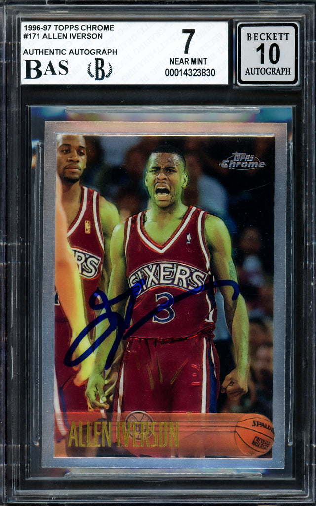 Allen Iverson Autographed 1996-97 Topps Chrome Rookie Card #171 Philadelphia 76ers BGS 7 Auto Grade Gem Mint 10 Beckett BAS #14323830