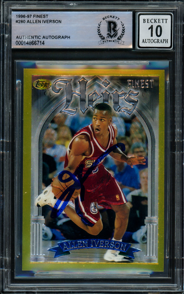 Allen Iverson Autographed 1996-97 Topps Finest Gold Rookie Card #280 Philadelphia 76ers Auto Grade Gem Mint 10 Beckett BAS #14866714