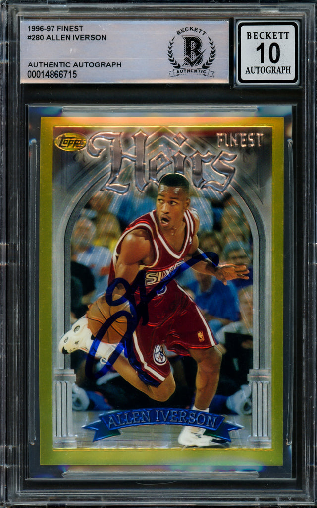Allen Iverson Autographed 1996-97 Topps Finest Gold Rookie Card #280 Philadelphia 76ers Auto Grade Gem Mint 10 Beckett BAS #14866715