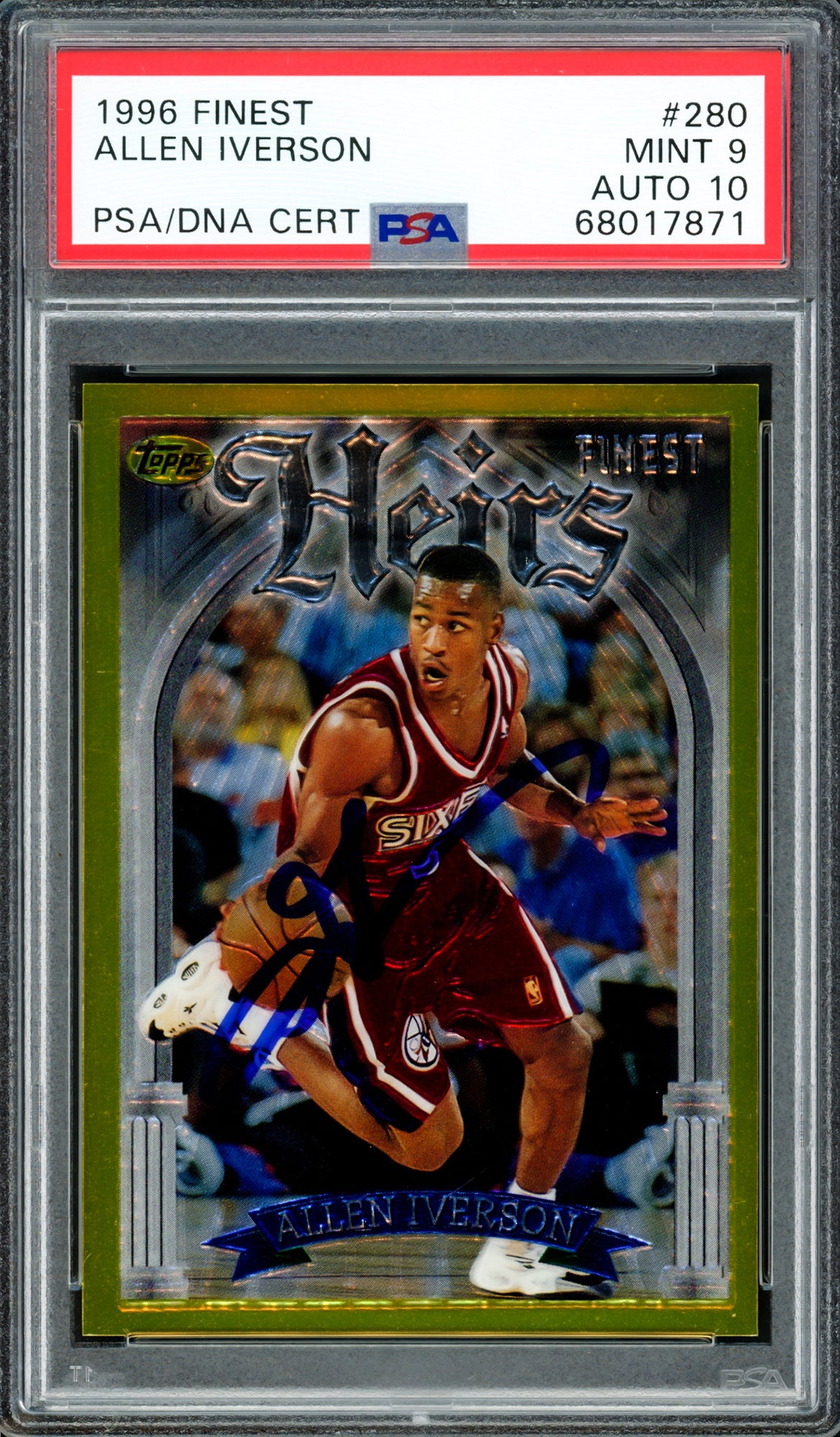 Allen Iverson Autographed 1996-97 Topps Finest Gold Rookie Card #280 Philadelphia 76ers PSA 9 Auto Grade Gem Mint 10 PSA/DNA #68017871