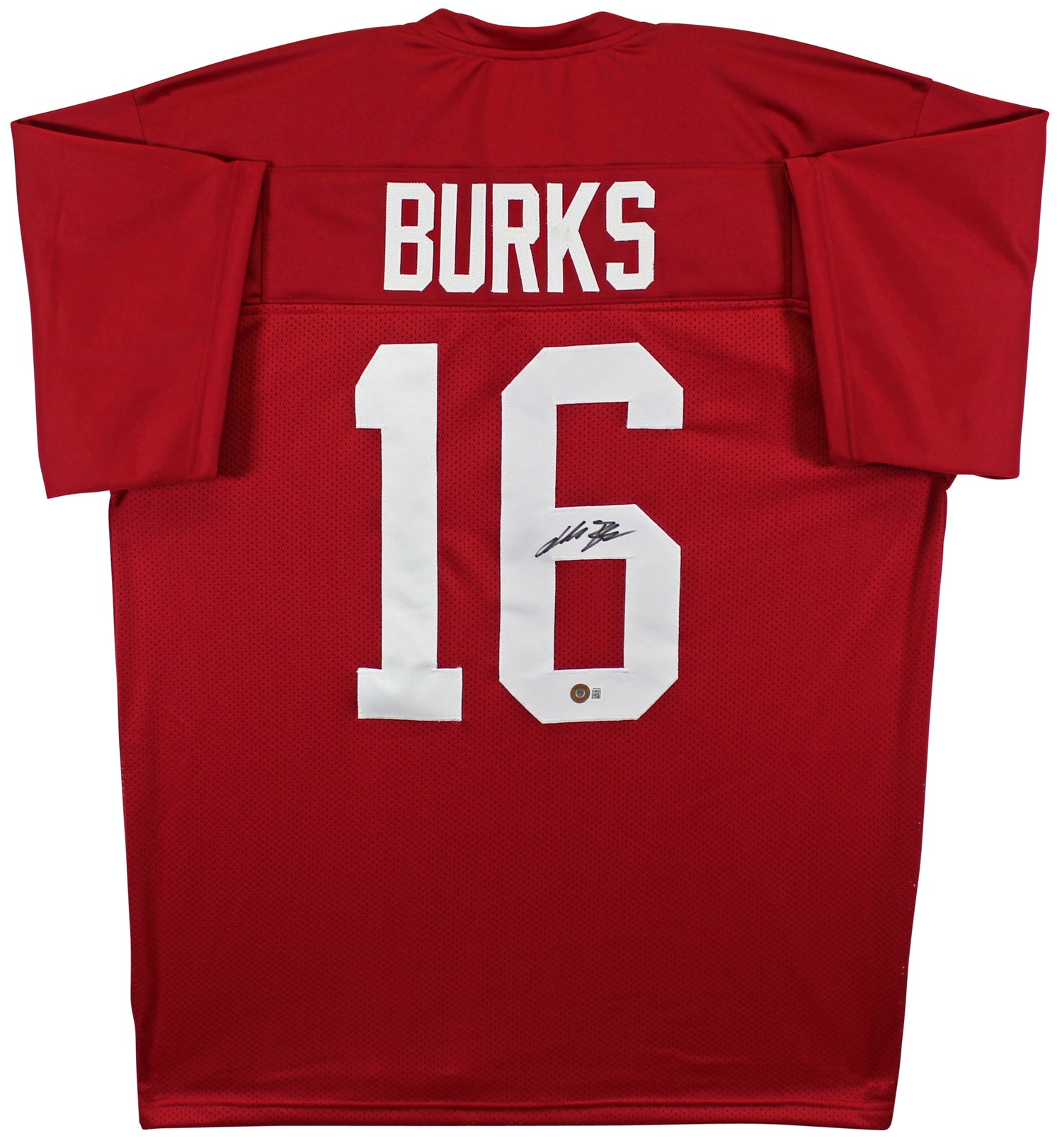 Own a piece of Arkansas Razorbacks history with this Autographed Red Pro Style Jersey personally signed by Treylon Burks. A standout wide receiver, Burks made a name for himself with his explosive plays and impressive athleticism. This signed jersey is a must-have for any Razorbacks fan or sports memorabilia collector.