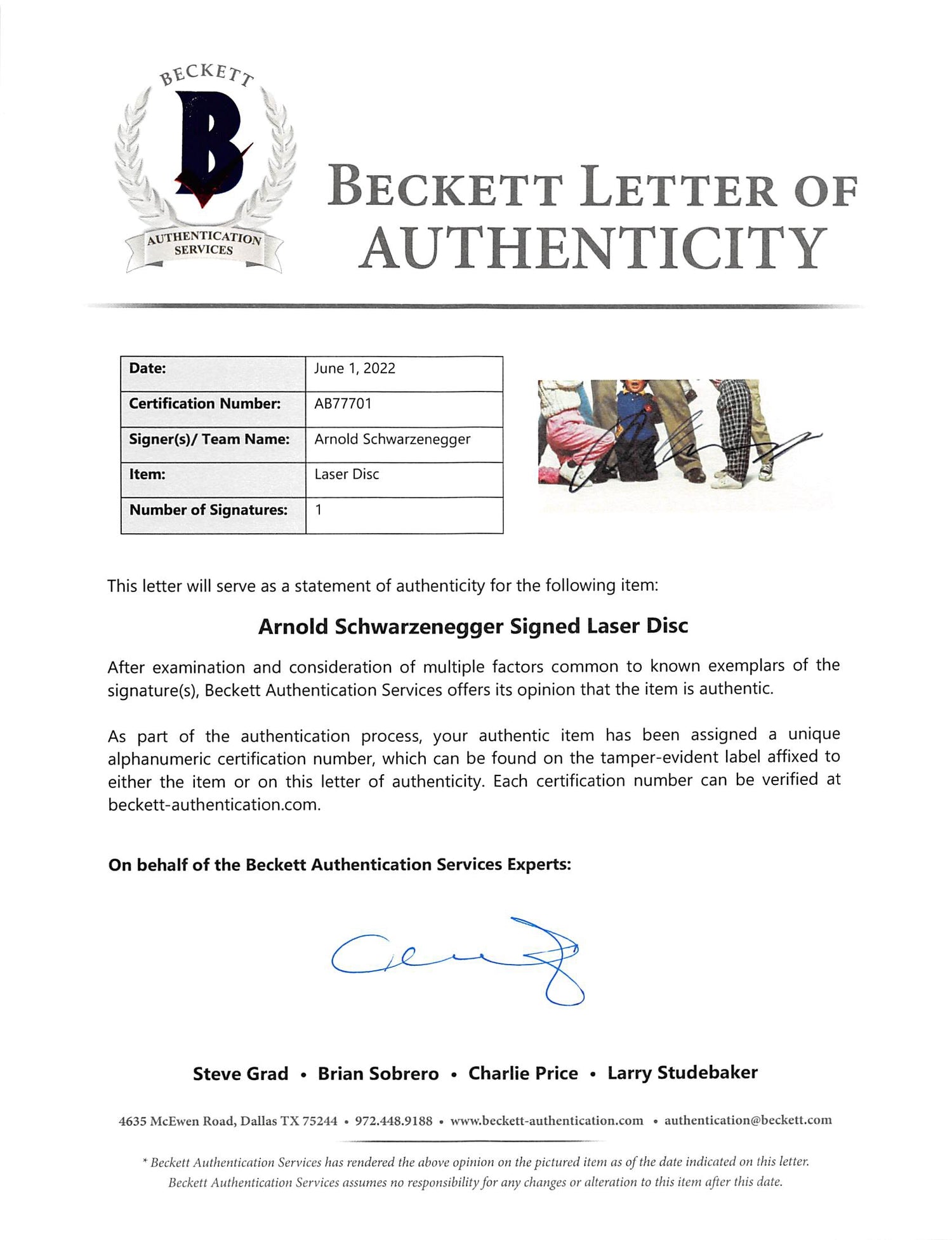 Arnold Schwarzenegger Authentic Signed Kindergarten Cop Laserdisc Cover BAS