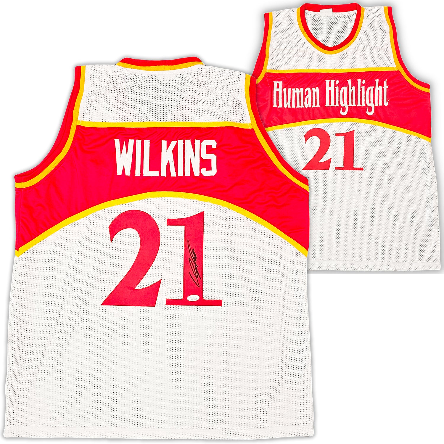Own a piece of basketball history with this hand-signed Dominique Wilkins White Jersey. A must-have for dedicated Atlanta Hawks fans and collectors, this custom jersey features sewn-in name and numbers for an authentic look and feel. While it does not have a manufacturer brand, it is approximately size XL, making it perfect for display in your memorabilia collection.