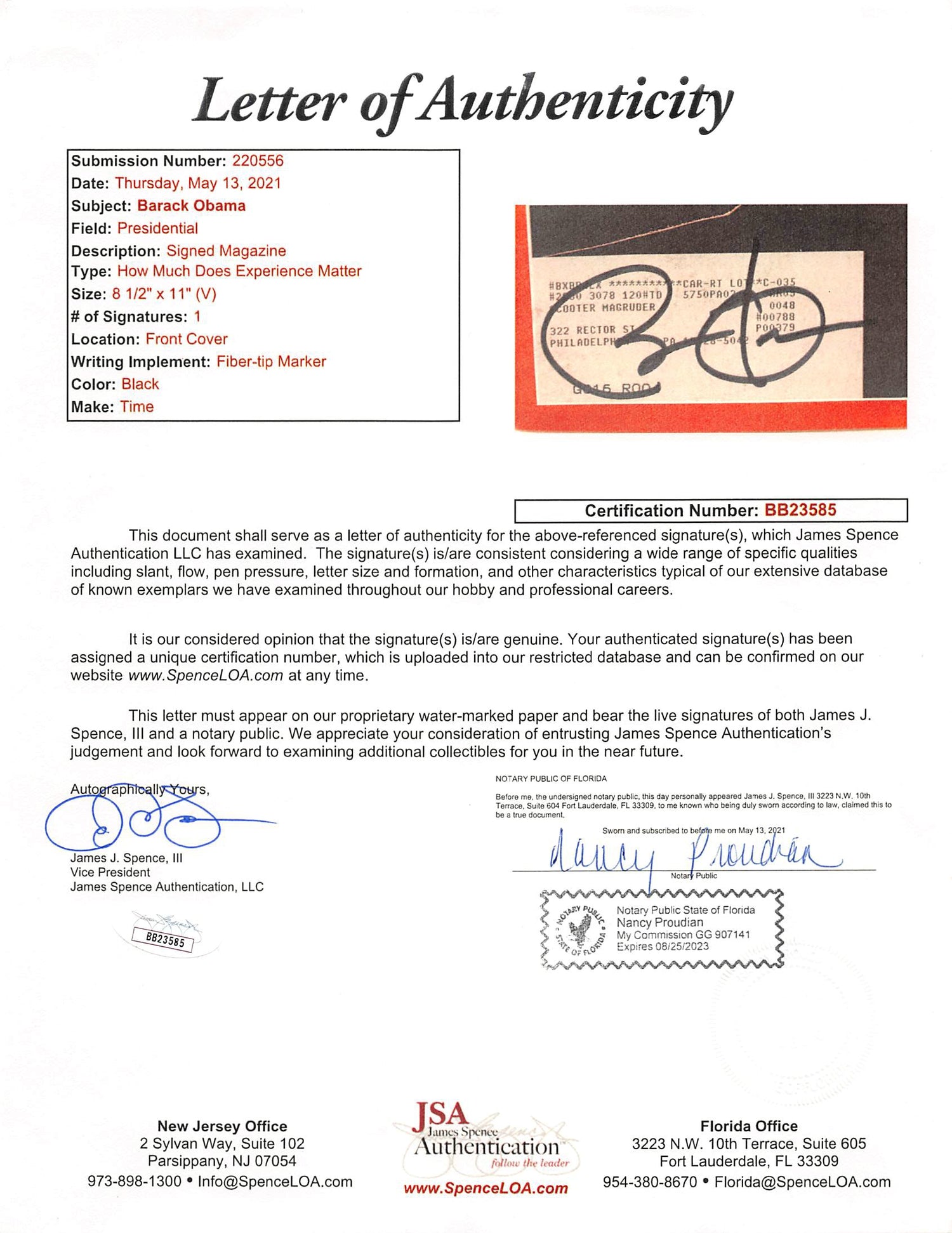 Barack Obama Authentic Signed March 10, 2008 Time Magazine JSA #BB23585