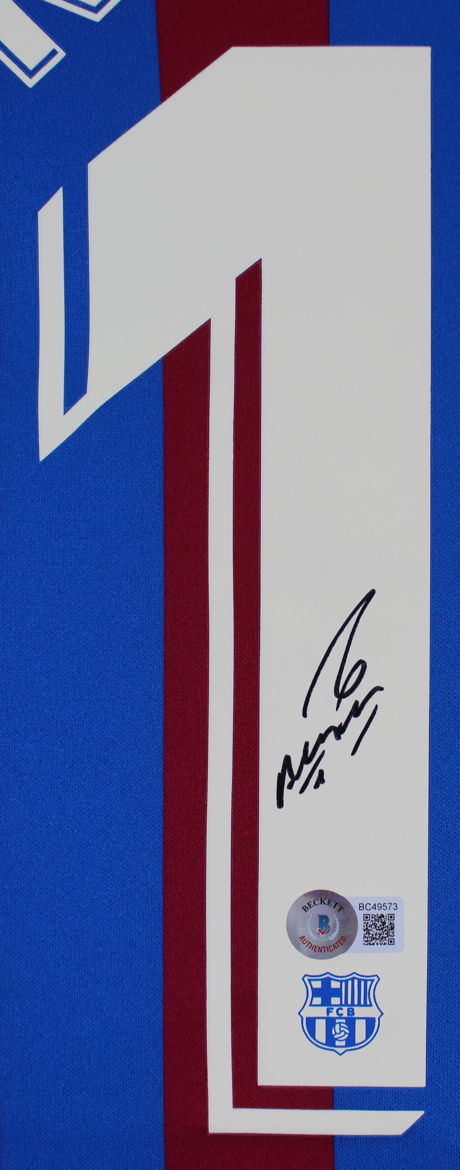Own a piece of football history with this Autographed Blue & Red Nike Jersey, personally signed by Sergio Agüero from Barcelona Football Club. A must-have for dedicated Barça fans and collectors, this jersey celebrates one of football's most legendary strikers. Product Features: