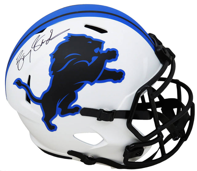 Own a piece of football history with this Barry Sanders signed Detroit Lions Lunar Eclipse white matte Riddell speed full-size replica helmet. This stunning collectible celebrates one of the greatest running backs of all time, making it a must-have for any Detroit Lions fan or sports memorabilia collector.