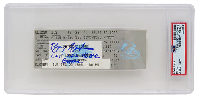 Barry Sanders Signed Detroit Lions vs Falcons December 20, 1998 Ticket Stub w/Last NFL Home Game (PSA Encapsulated)
