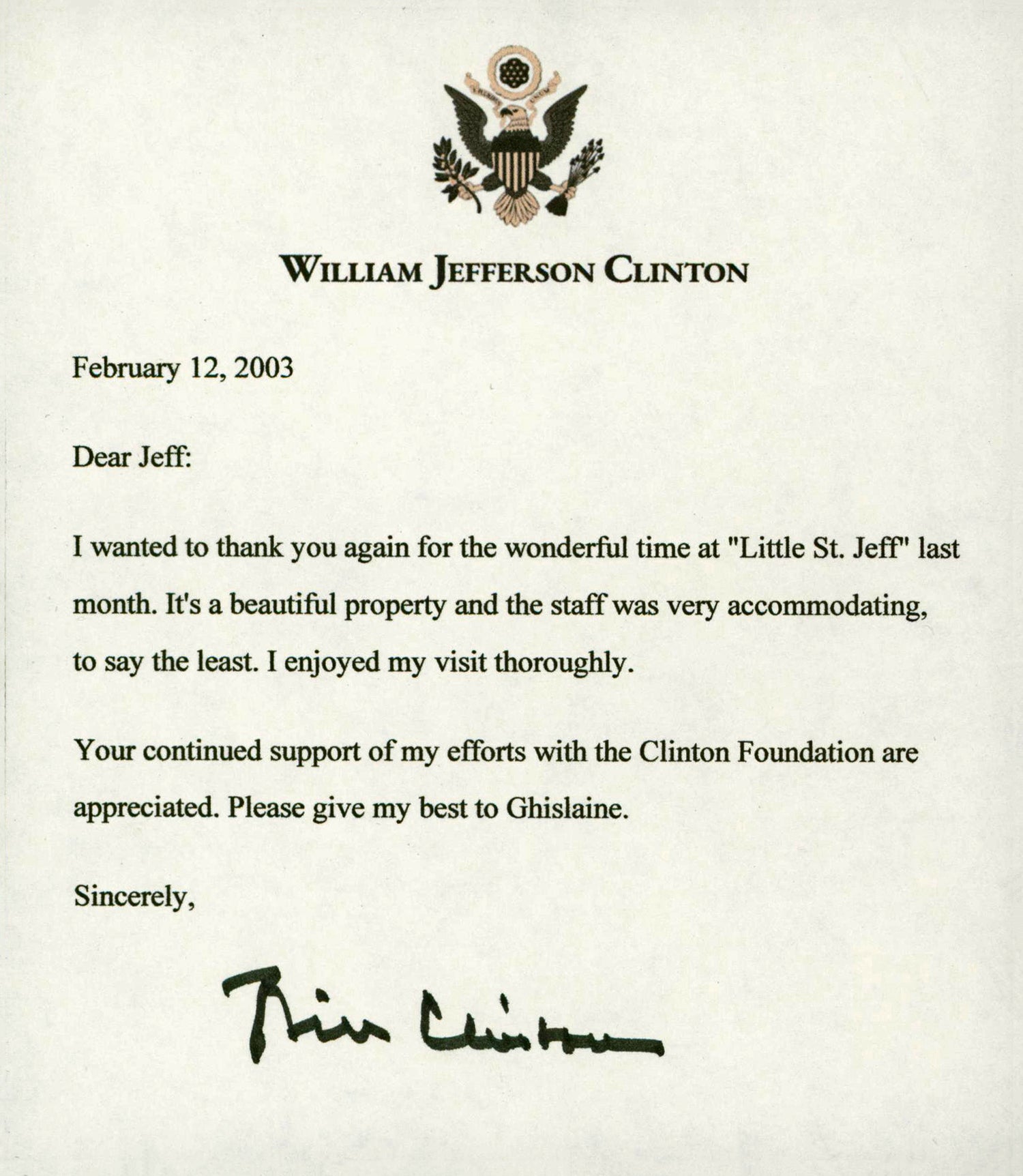Bill Clinton Signed 5.5x6.5 Letter Auto Graded Gem Mint 10! BAS #AA03542