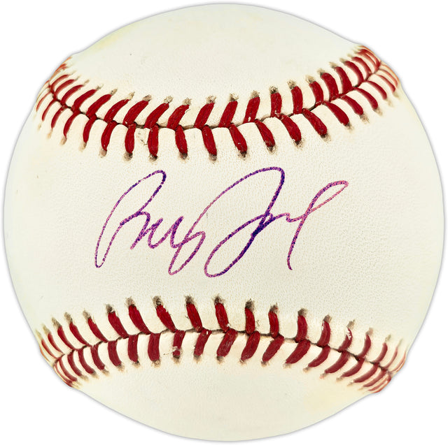 Own a unique piece of pop culture memorabilia with this Official American League Baseball hand signed by music legend Billy Joel. Famous for timeless hits like "Piano Man" and "Uptown Girl," Billy Joel is one of the best-selling music artists of all time. This baseball blends the worlds of sports and entertainment, making it a distinct and conversation-worthy collectible for fans and collectors alike. While this item shows some toning consistent with its age, it remains a rare and authentic treasure that captures the spirit of a true American icon.