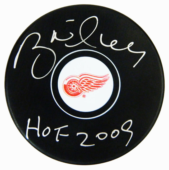 Brett Hull Signed Detroit Red Wings Logo Hockey Puck w/HOF 2009