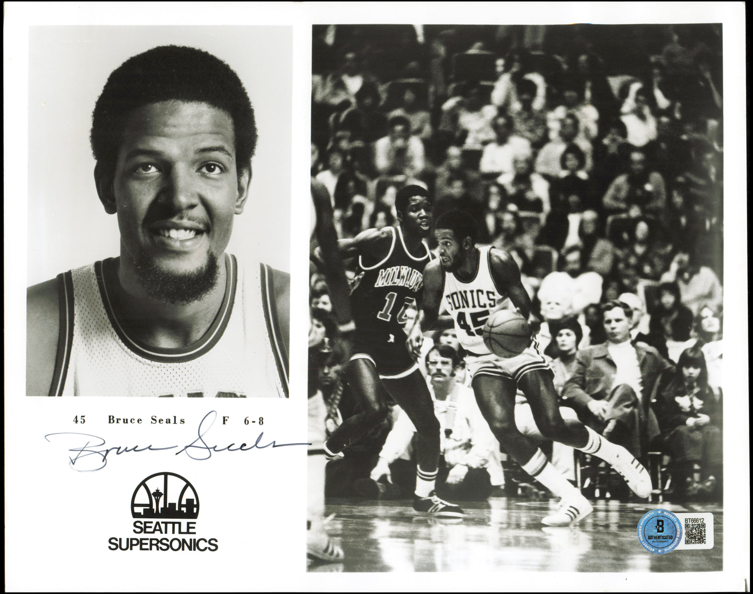Celebrate the legacy of ABA basketball with this team-issued 8x10 photo hand-signed by Bruce Seals, a standout player from the 1970s and a key figure in the history of the Utah Stars and Seattle SuperSonics. Known for his powerful presence on the court and contributions to the game during the dynamic ABA-NBA era, Seals' autograph adds a unique touch of authenticity to any sports memorabilia collection. This collectible is officially verified for authenticity, making it a must-have for serious fans and collectors alike.