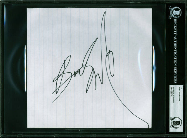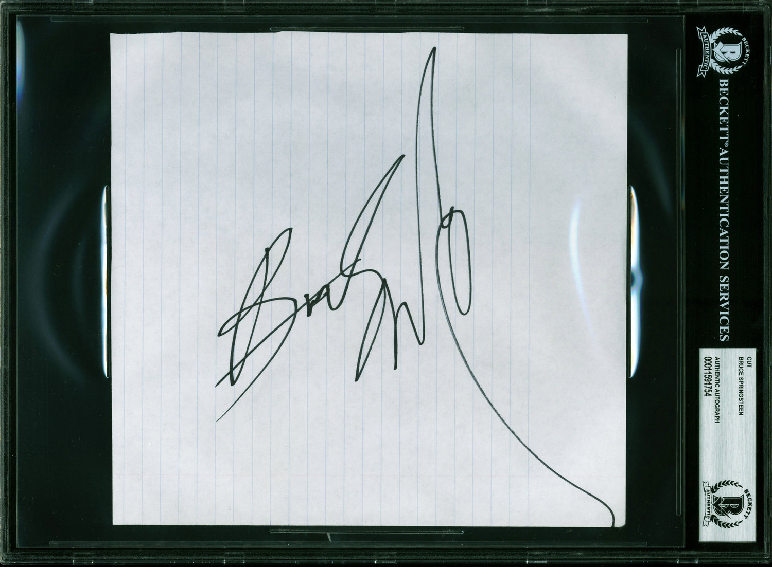 Own a piece of rock and roll history with this Autographed 7.5x8 Cut Signature personally signed by the legendary Bruce Springsteen. A must-have for collectors and fans, this rare signature celebrates the enduring legacy of "The Boss." Authenticated and slabbed by Beckett Authentication Services, ensuring its 100% authenticity.