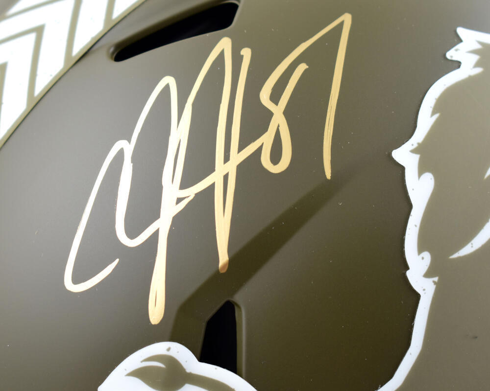 - Official Riddell Full-Size Salute to Service Speed Authentic Helmet, honoring the NFL’s commitment to military appreciation.