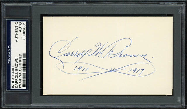 Carroll "Boardwalk" Brown Autographed 3x5 Index Card New York Yankees, Philadelphia A's "1911 + 1917" PSA/DNA #83862081 is backordered and will ship as soon as it is back in stock.