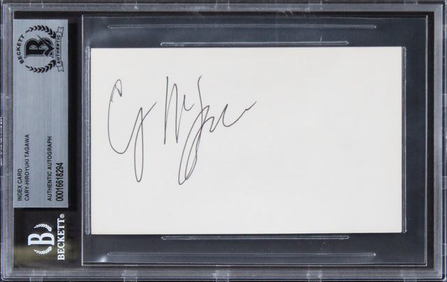 Cary-Hiroyuki Tagawa Mortal Kombat Authentic Signed 3x5 Index Card BAS Slabbed