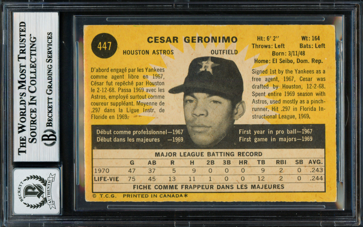 - Official 1971 O-Pee-Chee Rookie Card #447 – Featuring outfielder Cesar Geronimo
