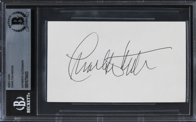 Charlton Heston Ben-Hur Authentic Signed 3x5 Index Card BAS Slabbed 4
