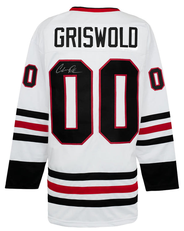- Custom white hockey jersey – Features the bold Griswold #00 design, perfect for display.