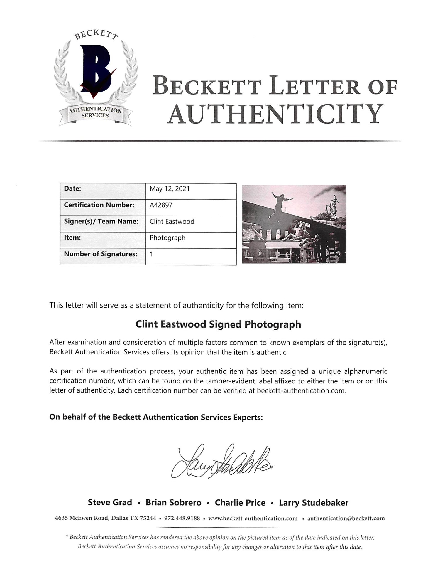 Enhance your memorabilia collection with this officially authenticated Clint Eastwood autographed photo—a timeless tribute to the iconic Dirty Harry legacy. Don't miss your chance to own a piece of Hollywood history!