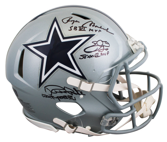 - Signed by Cowboys Legends: Emmitt Smith “SB XXVIII MVP,” Roger Staubach “SB VI MVP,” and Randy White “CoMVP SB XII.”