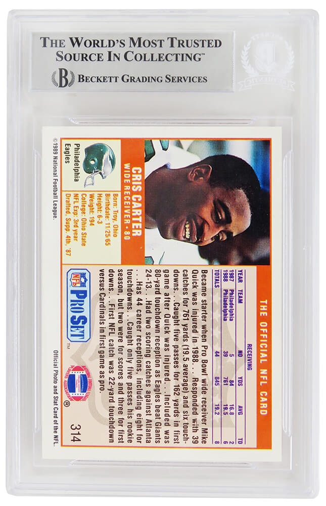 - Official 1989 Pro Set rookie card #314 – Featuring Hall of Fame wide receiver Cris Carter during his early career with the Philadelphia Eagles.