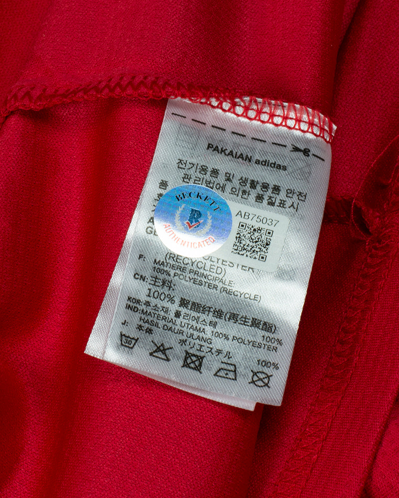 Own a piece of soccer history with this Cristiano Ronaldo signed red Adidas Manchester United jersey. A must-have for any serious collector, this authentic jersey showcases the legendary forward’s iconic signature, certified by Beckett Authentication Services for guaranteed authenticity.