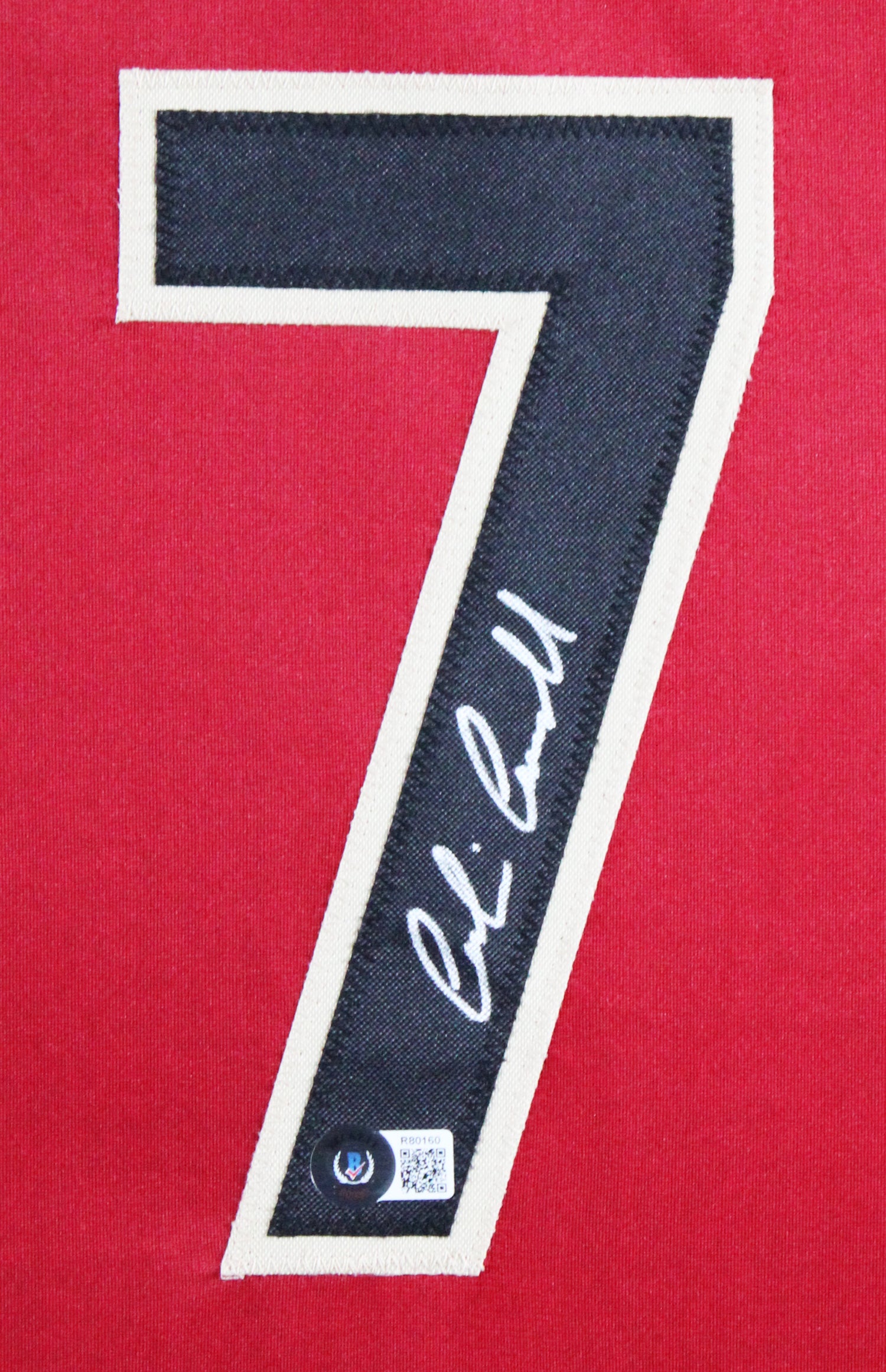 This autographed red Pro Style framed jersey is a must-have for any serious collector and fan of the Arizona Diamondbacks. Personally signed by rising MLB star Corbin Carroll, this stunning display piece celebrates one of baseball’s most exciting young talents. Known for his speed, power, and all-around athleticism, Corbin Carroll has quickly become a standout performer and a fan favorite since his debut with the Diamondbacks. Perfect for display in your home, office, or fan cave, this jersey has been professionally framed to preserve its value and presentation. Authenticated by the trusted Beckett Authentication Services (BAS), this collectible offers guaranteed authenticity and investment-grade assurance.