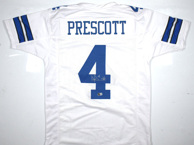 Dak Prescott Autographed White Pro Style Jersey - Beckett W Hologram *Silver is backordered and will ship as soon as it is back in stock.