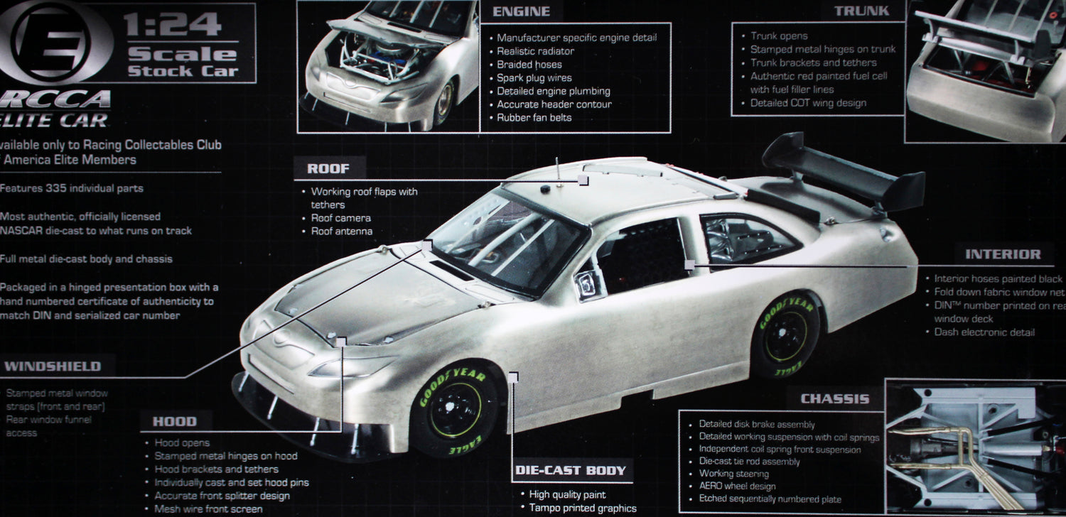 - Elite 1:24 Scale Diecast Replica of the 2008 Toyota Camry – Features detailed design elements true to the car Dale Jarrett raced in his final NASCAR Sprint Cup season.
