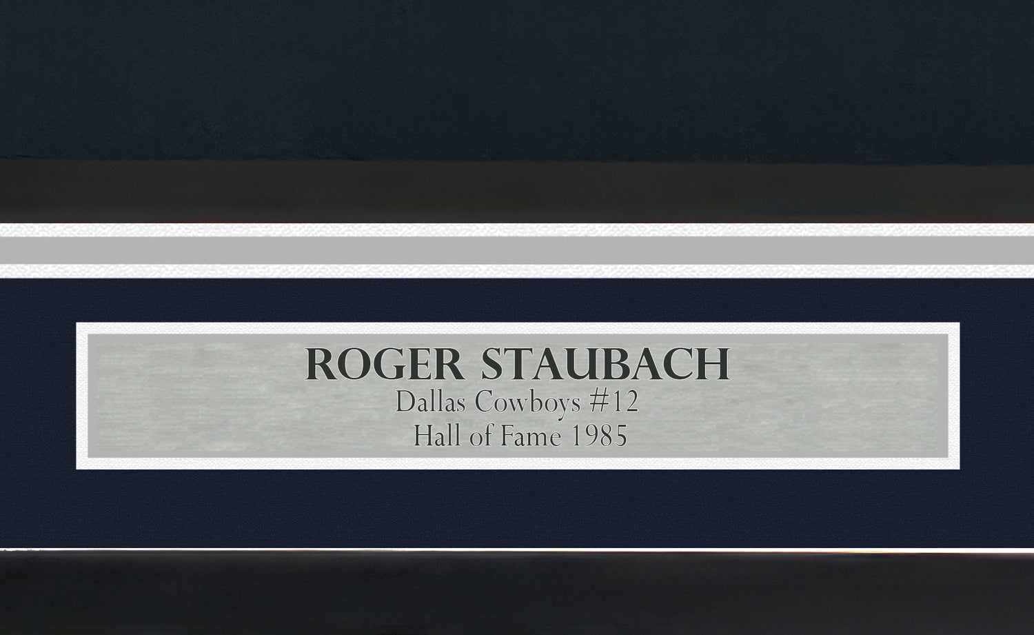 This beautifully framed Navy Blue custom jersey, approximately 31x36 inches with the frame, has been hand signed by legendary Dallas Cowboys quarterback Roger Staubach. A centerpiece-worthy collectible for any football fan, this signed jersey celebrates one of the most iconic figures in NFL history. Known for leading "America’s Team" to two Super Bowl victories and earning a place in the Pro Football Hall of Fame, Staubach's legacy makes this item a must-have for serious sports memorabilia enthusiasts.