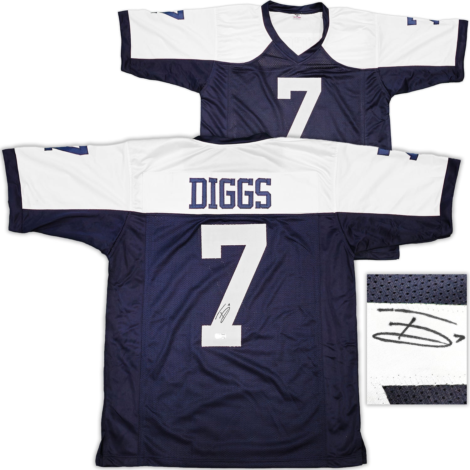 Own a piece of football history with this Trevon Diggs Signed Blue & White Jersey—a must-have for Dallas Cowboys fans and collectors! This custom jersey (non-branded) features sewn-in name and numbers and is approximately XL in size. Whether you're showcasing it in a memorabilia collection or gifting it to a Cowboys enthusiast, this jersey is a standout collectible.