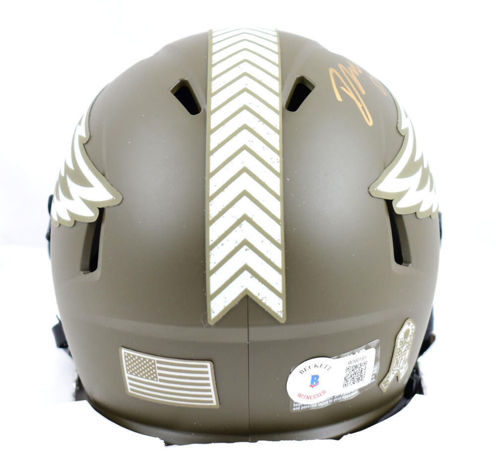 D'Andre Swift Signed Eagles Salute to Service Speed Mini Helmet- Beckett W Holo