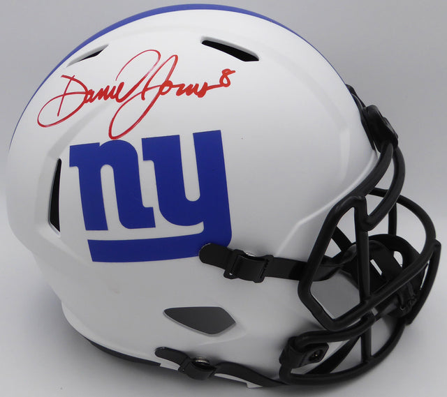 Own a piece of New York Giants history with this Daniel Jones Signed Alternate White Full-Size Speed Replica Helmet. Perfect for avid collectors and dedicated fans, this helmet is a must-have memorabilia item celebrating the Giants' star quarterback.