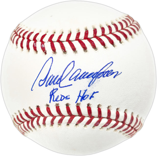 Celebrate the legacy of one of the Cincinnati Reds' greatest infielders with this authentic collectible: an Official MLB Baseball hand-signed by Dave Concepcion. A cornerstone of the legendary "Big Red Machine" of the 1970s, Concepcion helped lead the Cincinnati Reds to two World Series championships, earning his place in team history and in the hearts of Reds fans worldwide. This signed baseball features the special inscription "Reds HOF", honoring his 2000 induction into the Cincinnati Reds Hall of Fame. Please note, there is a slight smudge in the signature as shown, adding uniqueness to this one-of-a-kind item.