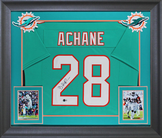 De'Von Achane Authentic Signed Teal Pro Style Framed Jersey BAS Witnessed
