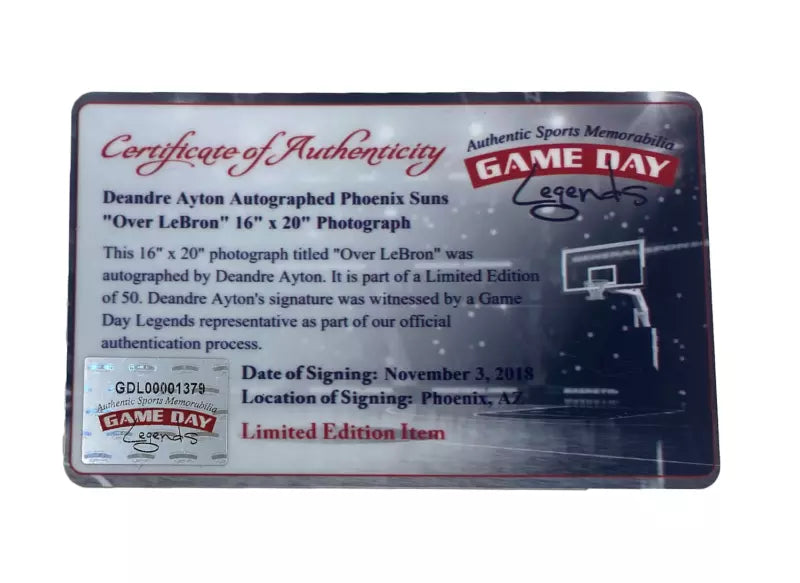 DeAndre Ayton Autographed Phoenix Suns "Over LeBron" 16" x 20" Photograph - Limited Edition of 50/50 - Game Day Legends & Steiner is backordered and will ship as soon as it is back in stock.