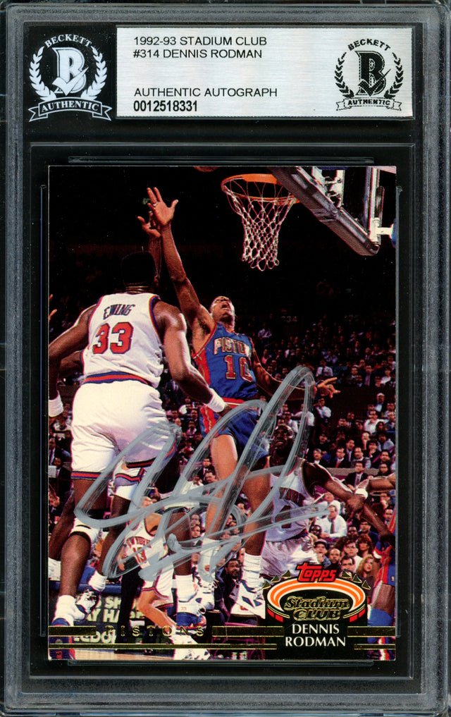 Dennis Rodman Autographed 1992-93 Stadium Club Card #314 Detroit Pistons Signed In Silver Beckett BAS #12518331