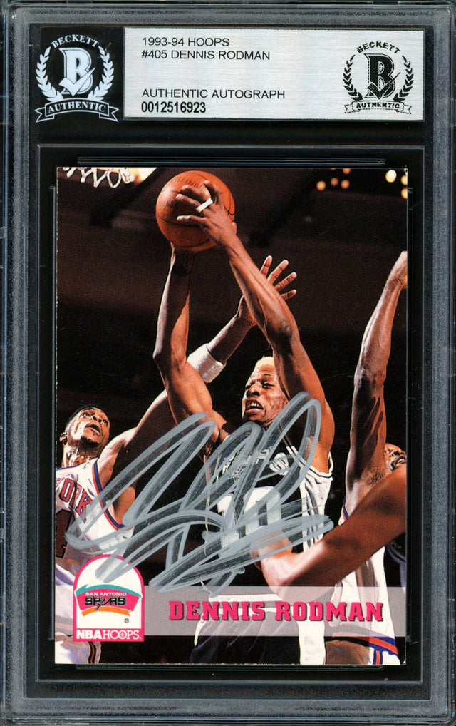 Dennis Rodman Autographed 1993-94 Hoops Card #405 San Antonio Spurs Beckett BAS Stock #184896