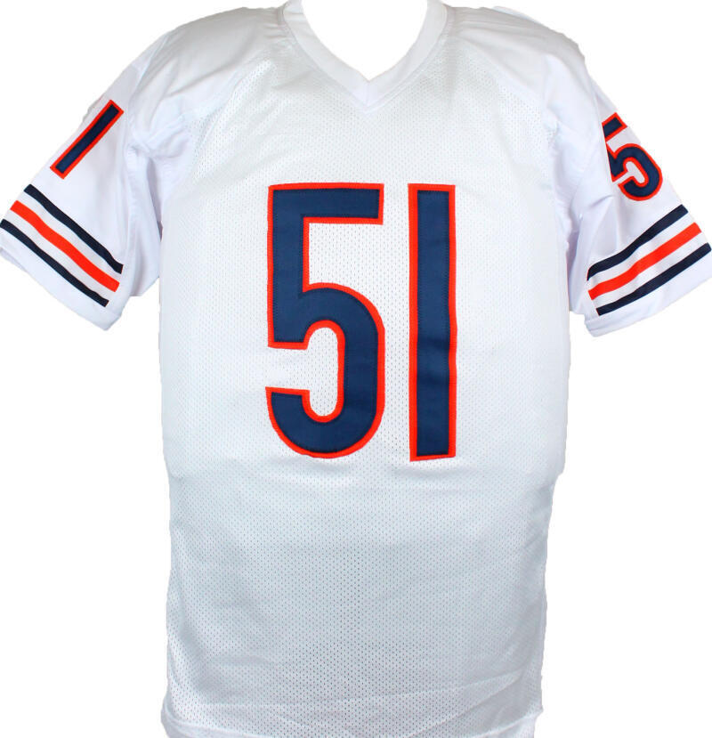 Dick Butkus Autographed White Pro Style Jersey- Beckett W Hologram *Silver is backordered and will ship as soon as it is back in stock.
