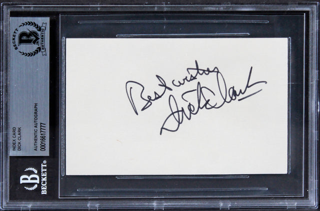 Dick Clark The $10,000 Pyramid Authentic Signed 3x5 Index Card BAS Slabbed