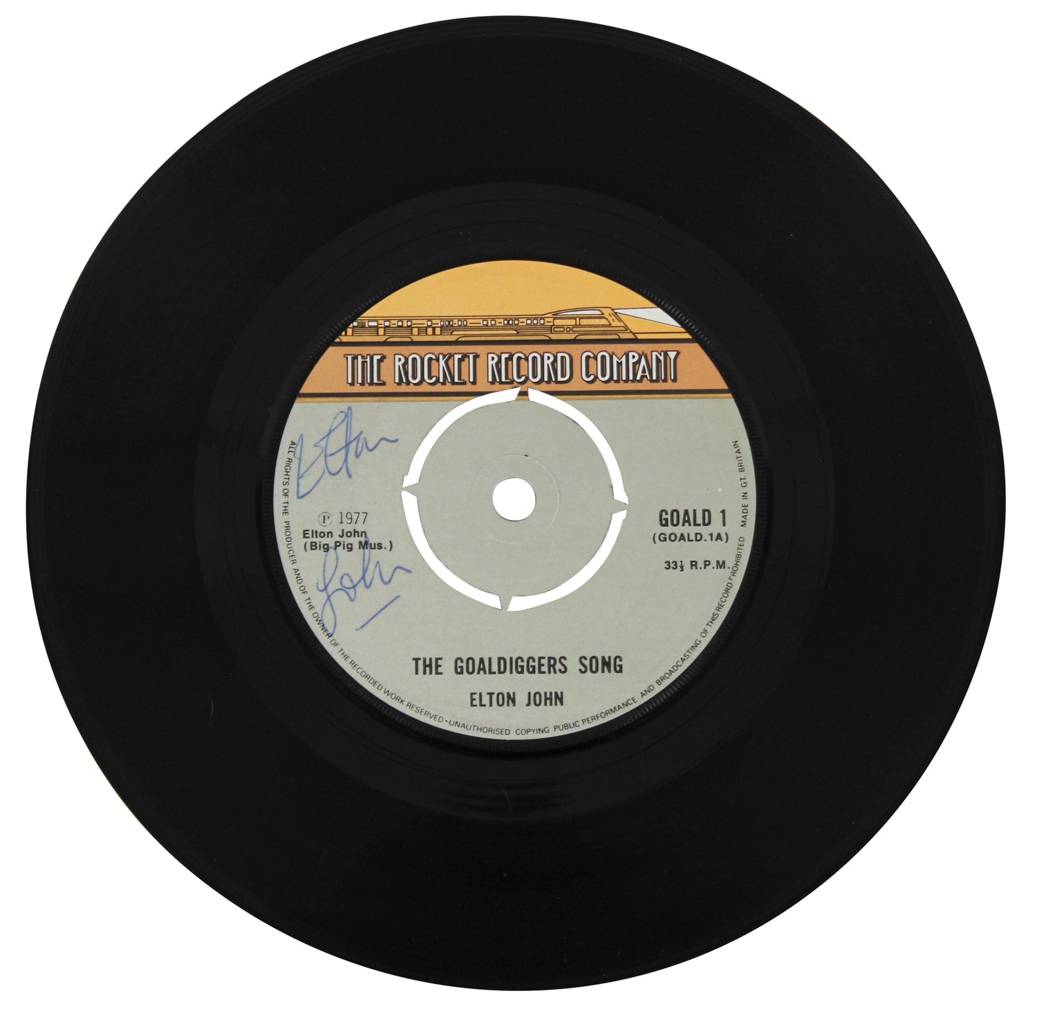 Elton John Signed The Goaldiggers Song 45 RPM Record Vinyl BAS #AD64010
