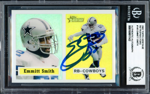 Emmitt Smith Autographed 2002 Topps Heritage Retrofractors Card #145 Dallas Cowboys #445/557 Beckett BAS #16901142