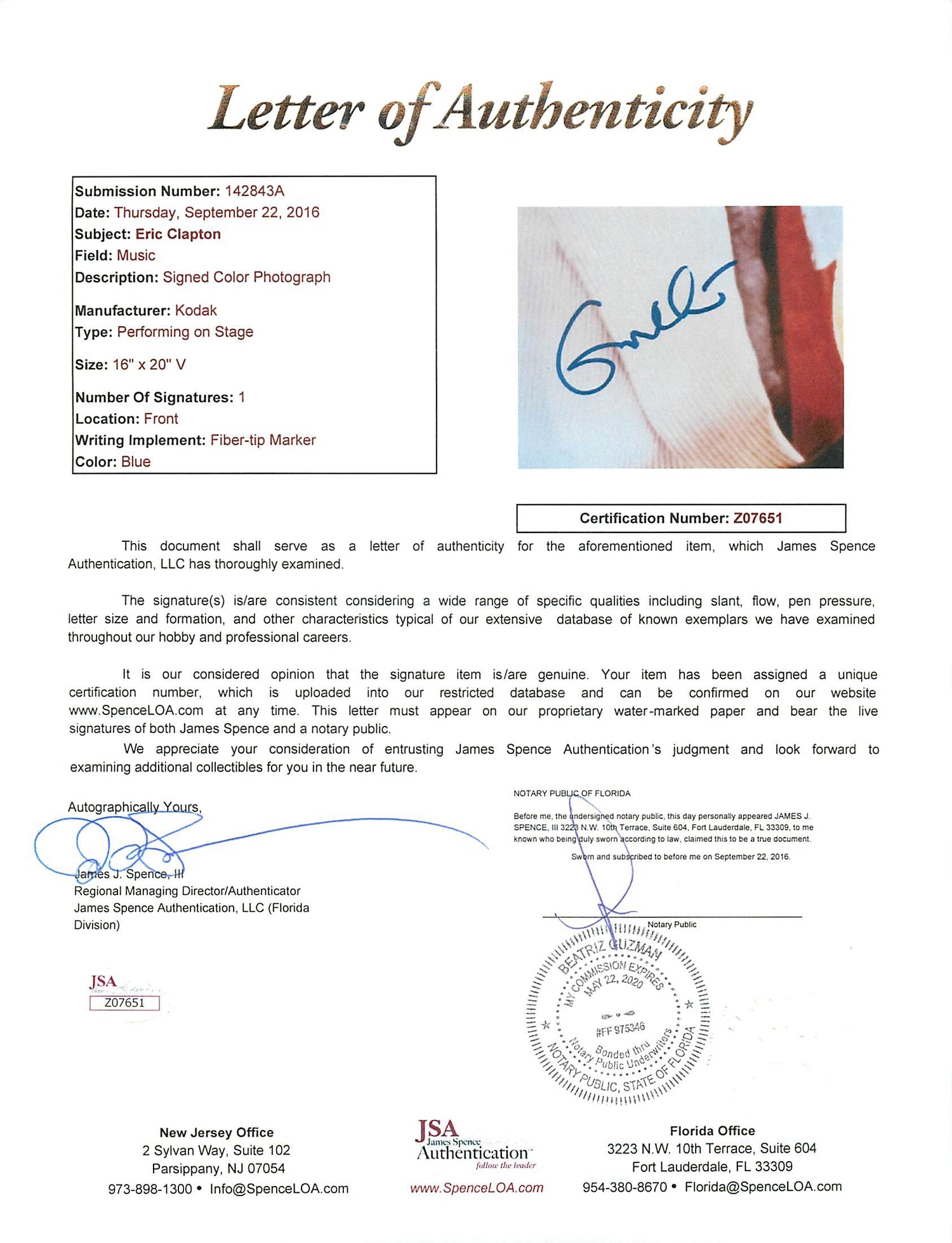 Eric Clapton Authentic Signed 16X20 Photo w/ Vintage Signature JSA #Z07651