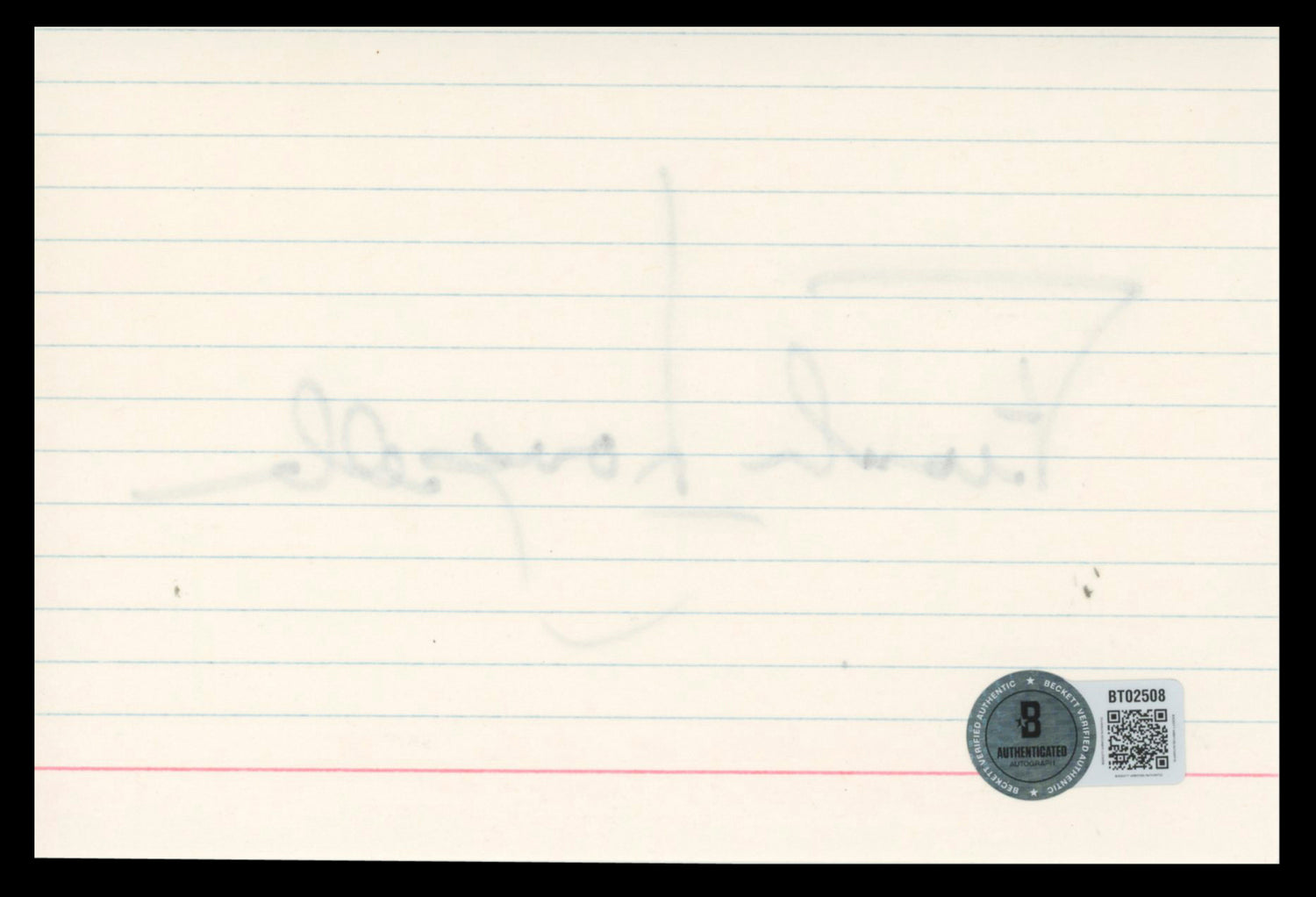This rare Autographed 4x6 Index Card has been personally signed by acclaimed actor Frank Langella, celebrated for his role in the crime drama film All Good Things. An award-winning performer with a long and storied career on stage and screen, Langella’s signature adds unique cinematic value to any memorabilia collection. Whether you're a fan of his powerful performances or a collector of film memorabilia, this signed piece offers both history and authenticity. Guaranteed 100% genuine by one of the most trusted names in the industry, this item includes authentication from Beckett Authentication Services (BAS) and is ideal for framing or archival display.
