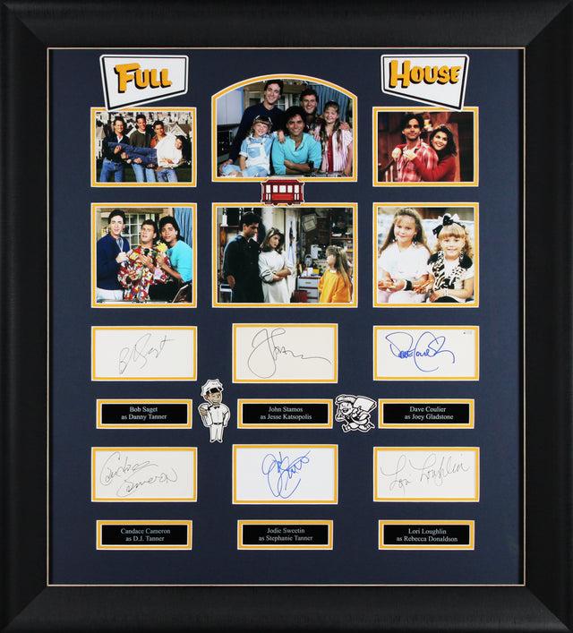 - Personally signed by the Full House cast: Bob Saget, John Stamos, Lori Loughlin, Candace Cameron Bure, Dave Coulier, and Jodie Sweetin