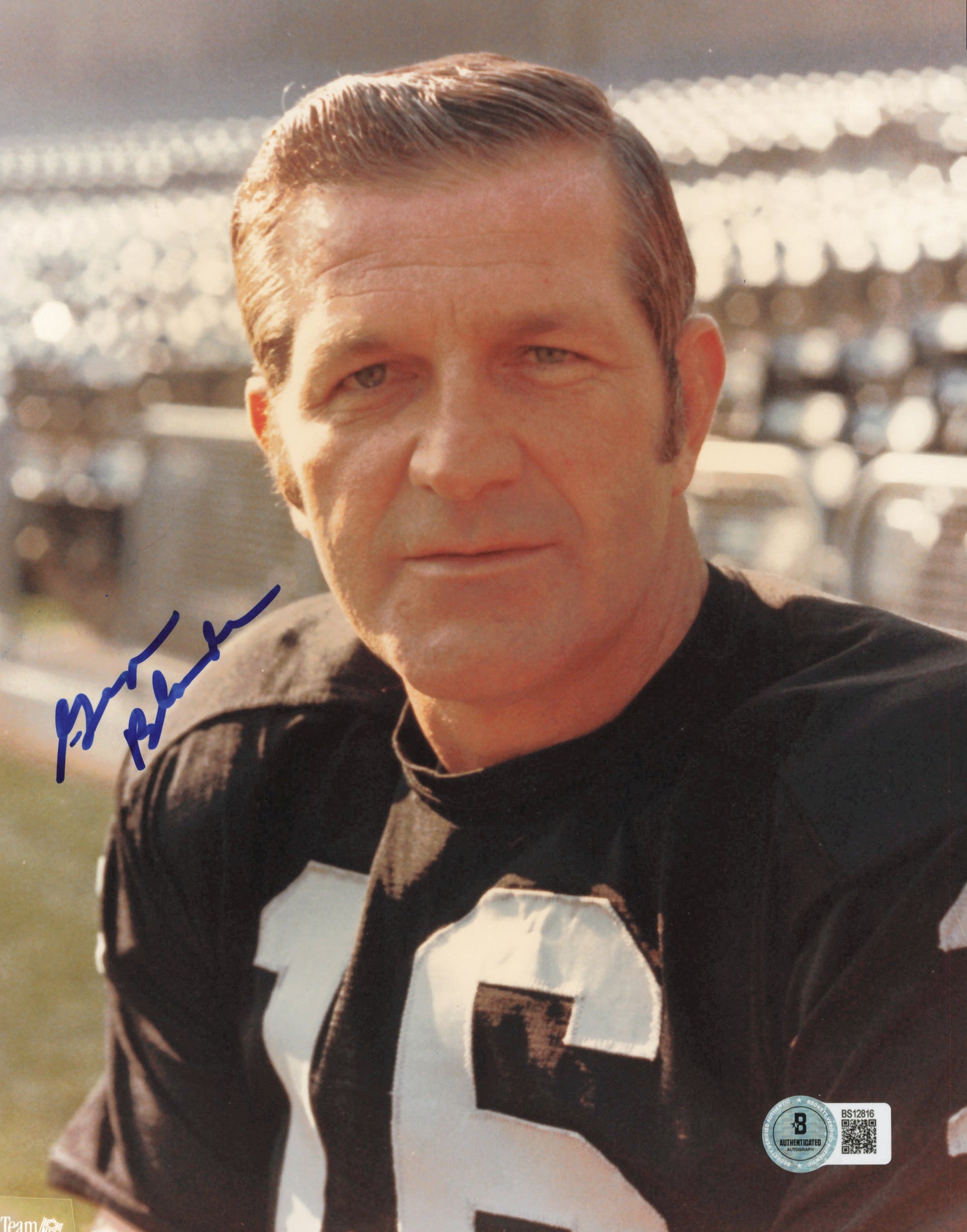 This collectible 8x10 photo has been hand signed by legendary Hall of Fame quarterback George Blanda, making it a must-have for serious football fans and memorabilia collectors. Known for his incredible durability and versatility, Blanda had a historic 26-season professional career with teams including the Chicago Bears, Houston Oilers, and Oakland Raiders. Whether you're a longtime AFL enthusiast or a Raiders supporter reliving the glory days of the 1970s, this piece connects you with one of the most iconic figures in football history.