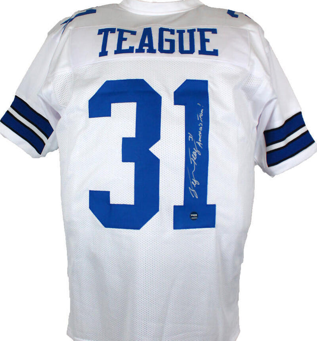 Own a piece of Dallas Cowboys history with this hand-signed George Teague custom jersey, featuring the inscription "America’s Team." Perfect for die-hard Cowboys fans and memorabilia collectors, this jersey is a must-have tribute to one of the franchise’s most respected defensive players.
