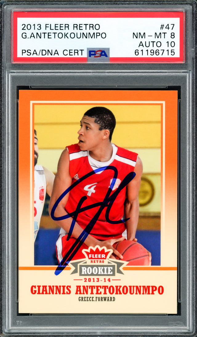 Giannis Antetokounmpo Autographed 2013 Fleer Retro Rookie Card #47 Milwaukee Bucks PSA 8 Auto Grade Gem Mint 10 PSA/DNA #61196715